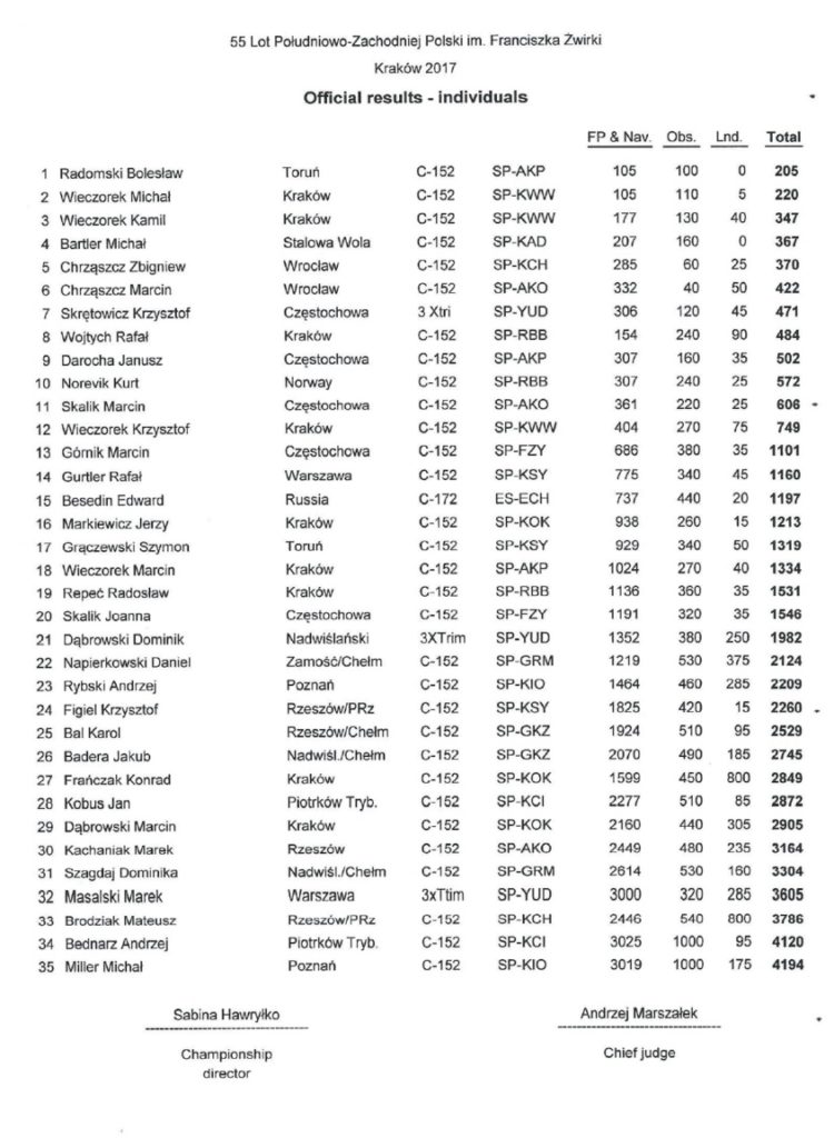 Poniżej prezentujemy oficjalne wyniki 55 Lotu Południowo Zachodniej Polski. Na najwyższym podium stanął Bolesław Radomski, natomiast na II i III miejscu nasi reprezentanci kolejno Michał Wieczorek i Kamil Wieczorek.