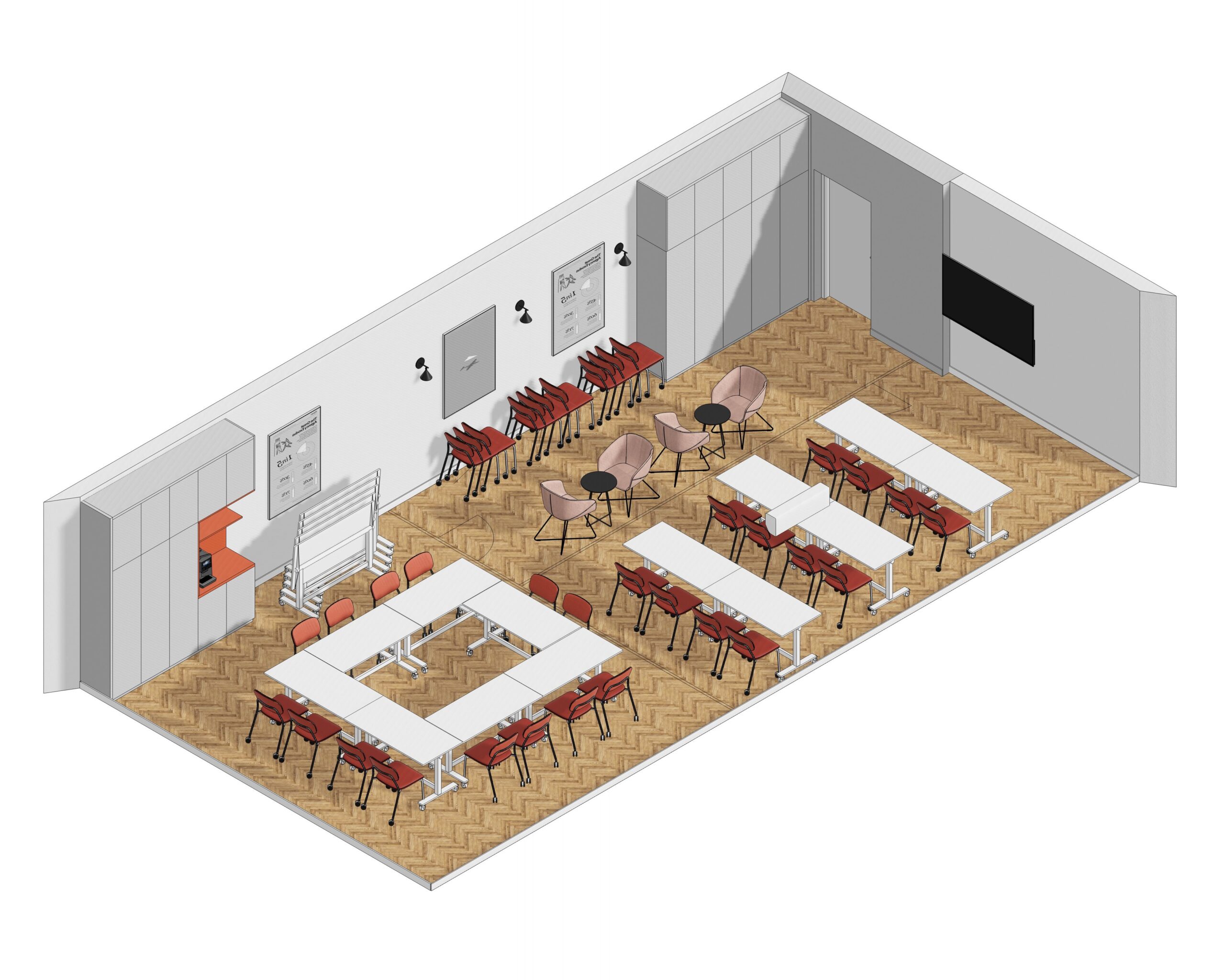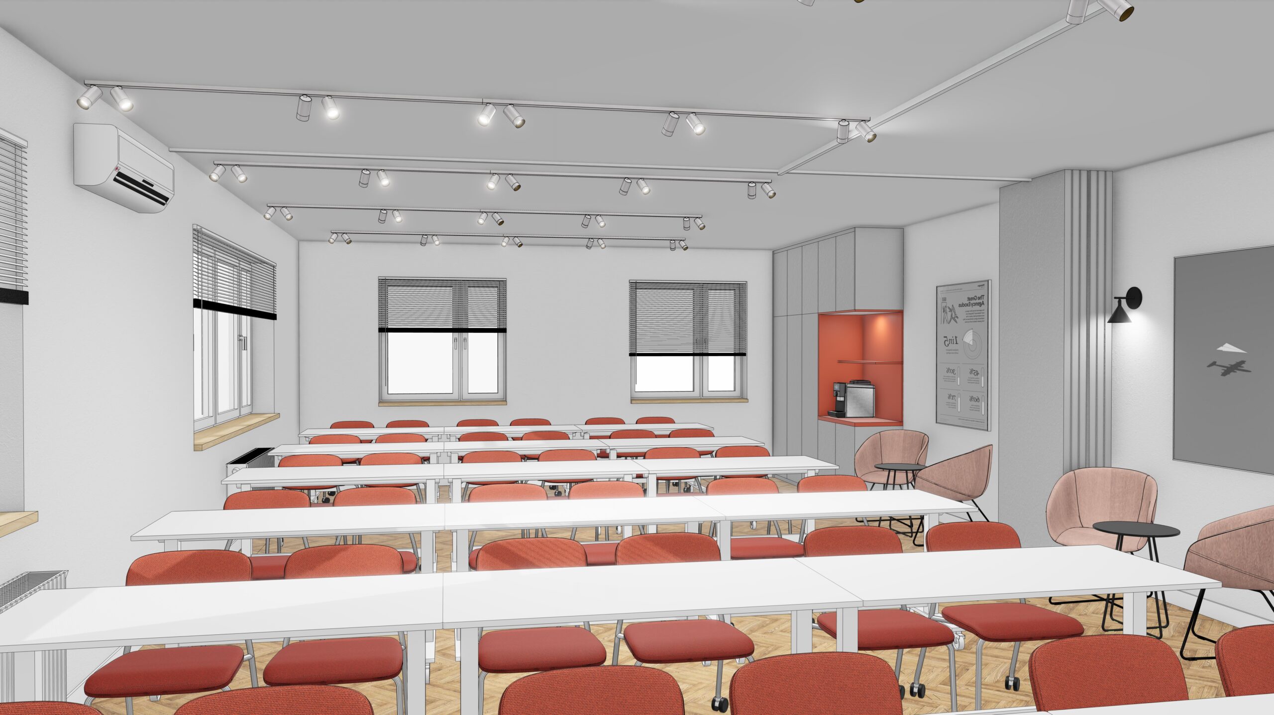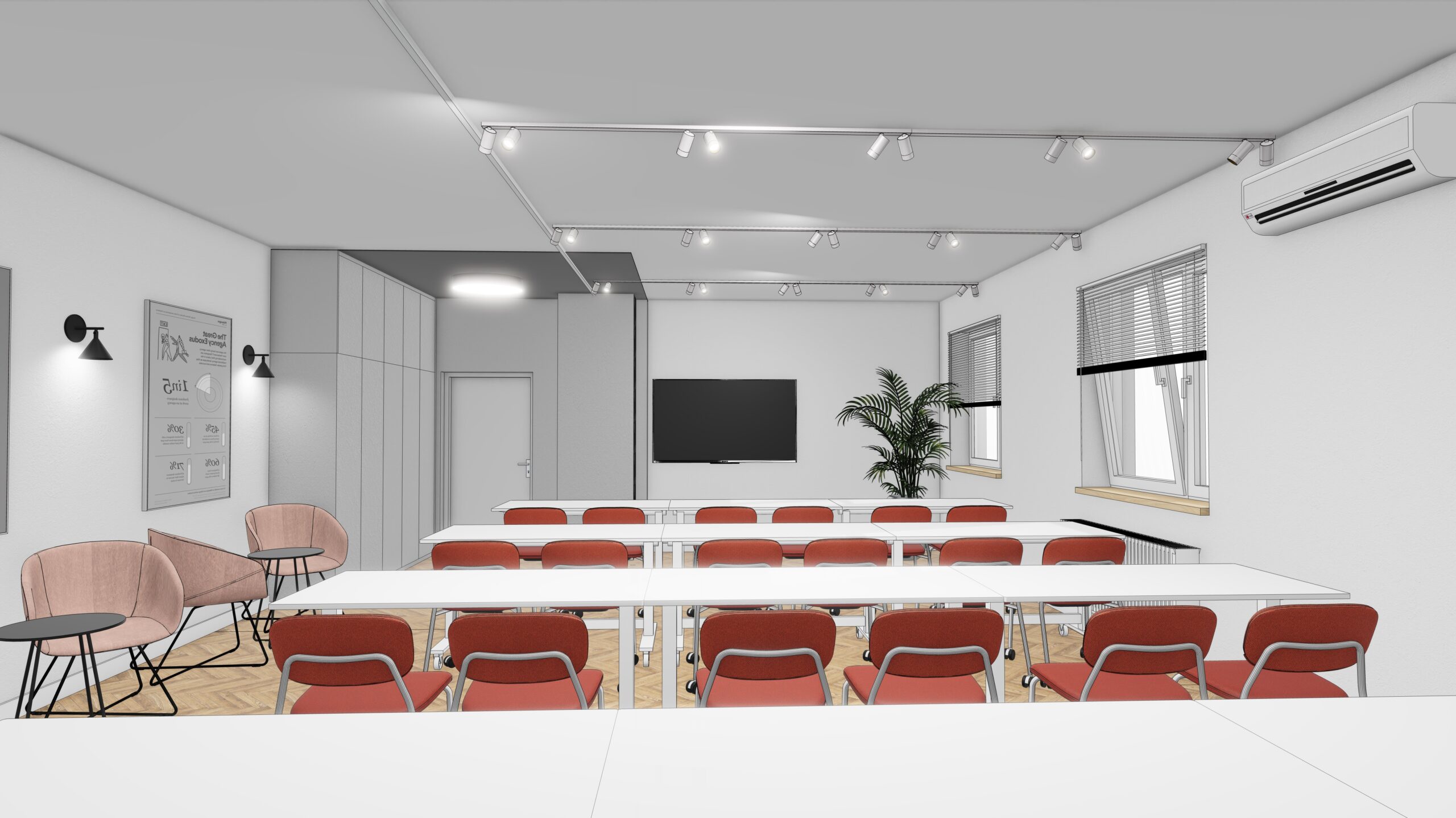Z przyjemnością prezentujemy projekt nowej sali konferencyjnej, która po generalnym remoncie będzie mogła służyć jako pomieszczenie do prowadzenia szkoleń czy organizacji konferencji.